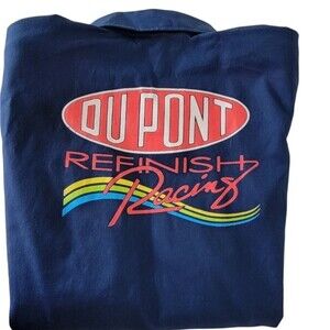 Left front pocket says Dupont Refinish Racing. Button down collar and top sleeve button lappel.