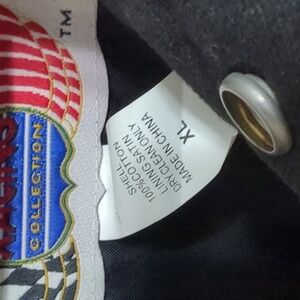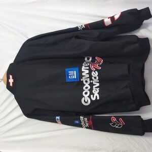 The condition is used with no noticeable material flaws. Stylish black jacket with embroidered logos. Features red and white accents. Perfect for casual wear. Dale Earnhardt #3.