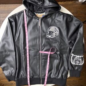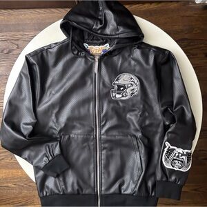 Jeff Hamilton x Detroit Lions Vegan Leather Full Zip Hooded Jacket Medium New