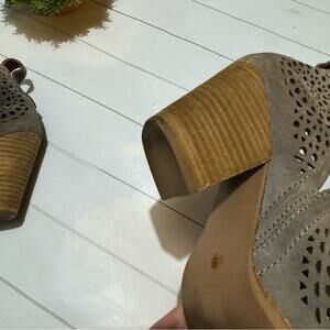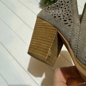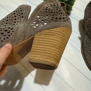 These boots are in great overall condition. See pictures for all signs of wear. Rosalee style perforated gray leather heeled ankle boots booties. Womens size 9. 2.5.24