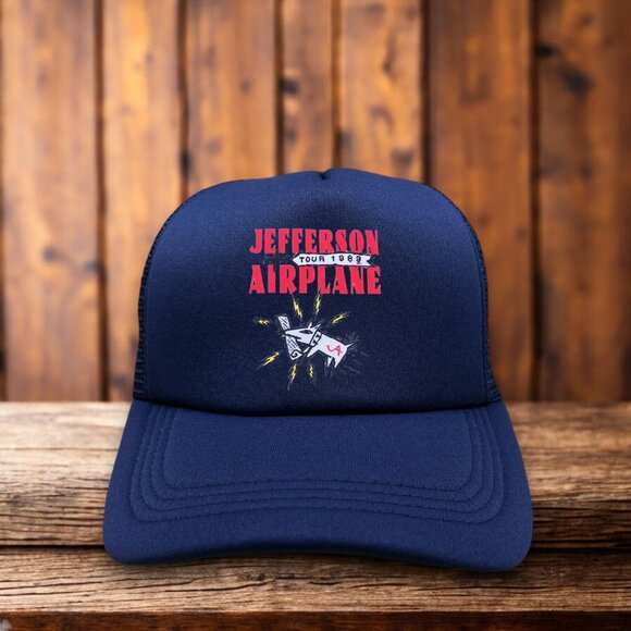 Jefferson Airplane Mens Trucker Hat Navy 60s Psychedelic Rock 1989 Tour Ball Cap