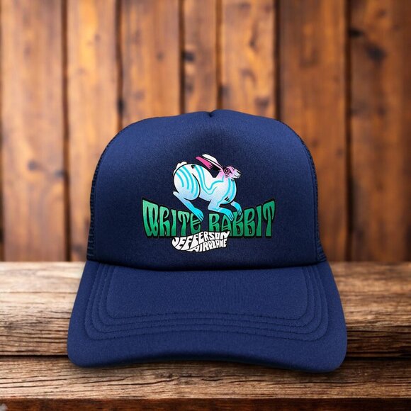 Jefferson Airplane White Rabbit Mens Trucker Hat Navy 60s Psychedelic Rock
