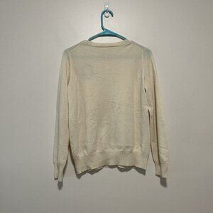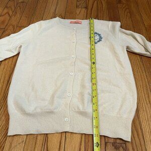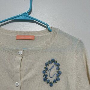 Jefferson Lane Ivory Cashmere Cardigan Blue Embroidered Flower Detail Size Small