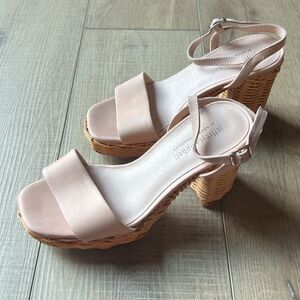 Jeffery Campbell Anthropologie Platform Pink Leather Basket Heels 7.5