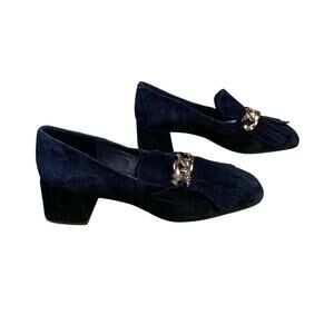 Jeffery Campbell Black Suede Chain Accent Block Heel Loafer Style Pump Size 9.5