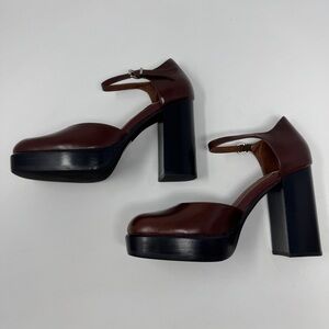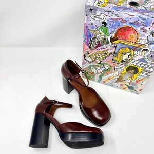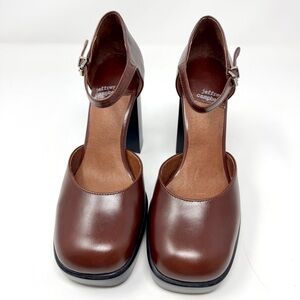 Jeffery Campbell Brown Sophia Platform Mary Jane Heels Chunky Block Heel