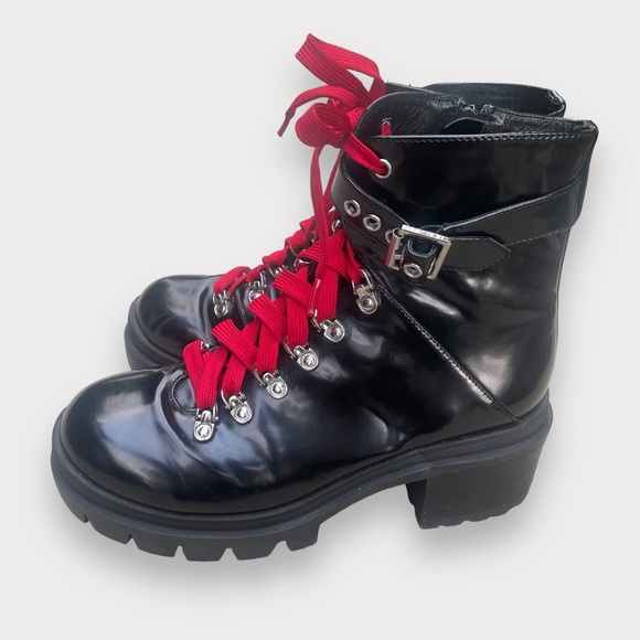 Jeffery Campbell Czech Patent Faux Leather Combat Platform Boots| 9.5