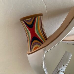Jeffery Campbell Free People One Strap White Wooden Patterned Heels Sz 6.5
