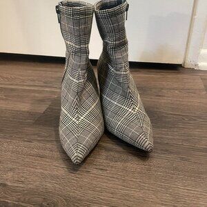 Jeffery Campbell Plaid Side Zip Pointed Toe Heeled Ankle Boots Women's 6