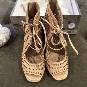 Jeffery Campbell | ‘Rodillo Hi’ Nude Leather Geometric Cut-Out Wedge Sandals 8.5