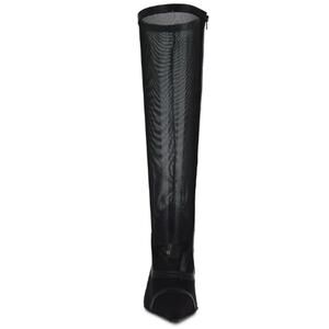Step up your statement shoe game with these edgy Jeffrey Campbell Stockings Boots. Featuring a sleek mesh upper with leather trim, these pointed-toe boots offer a stiletto silhouette with a futuristic twist. Designed with a leather footbed for comfort and a dramatic 15" shaft height, they’re perfect for fashion-forward looks.
