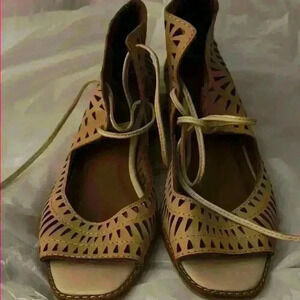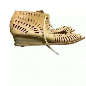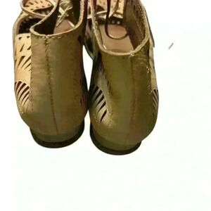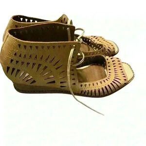 These tan shoes are perfect for everyday wear with their comfortable fit and stylish design. The size is no longer visible however I wear a 7 and they are about an inch too big, so I am going to say they are an 8. They are in really good condition.