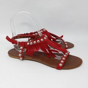 Jeffery Campbell Wink Red Suede Fringe Studded sandals, Women's Size 7.