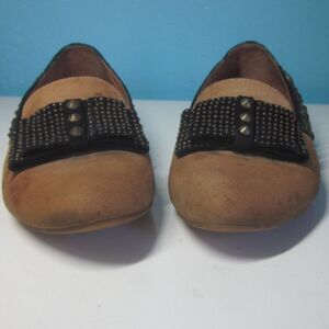 Jeffery Campbell Womens Size 7.5 Slip On Flats Studded Bow Loafer Tan / Black