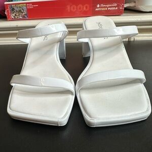 Jeffery Campbell white size 7 chunky heeled sandal. Excellent condition. Strappy sandal. Perfect for by the pool or Ocean. Heel is 3”