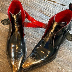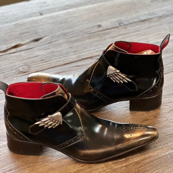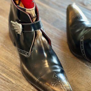 Jeffery West Flashmans Spirit dark brown & copper silver wings buckle size 9 Unique! Dark brown with copper and metallic highlights. Silver wings buckle. Cross on top. I couldn't find any of these online to compare to. Worn but in very good shape.
