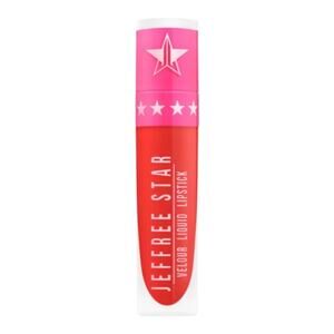 Itroducing the Jeffree Star Cosmetics Velour Liquid Lipstick in “Prick”—a vibrant bright coral orange shade that delivers a bold statement with its matte finish.