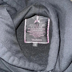 Jeffree Star Cosmetics fashion JSC 5 year Anniversary iconic mystery drawstring hoodie sweatshirt black purple adult size small unisex EUC!