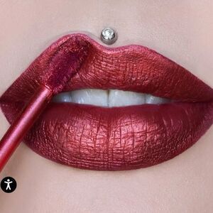 Limited Edition JEFFREE STAR COSMETICS Velour Liquid Lipstick in Poinsettia which is a Deep Red with a Metallic Finish.