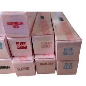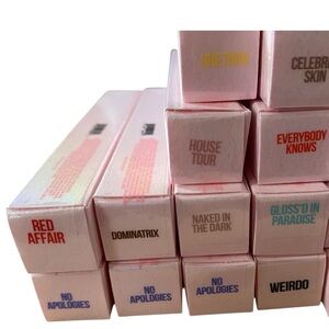 19 Supreme Glosses: 3 No Apologies, 2 Blue Balls, and 1 each of Weirdo, Red Affair, Naked in the Dark, Dominatrix, House Tour, Urethra, Gloss’d in Paradise, Everybody Knows, Celebrity Skin, Watermelon Soda, Blood Sugar, Tea Bag, Blow My Candles, and Mannequin