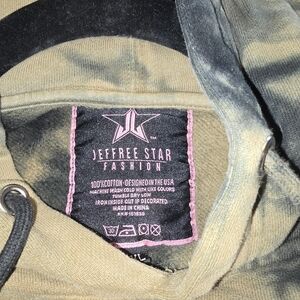 Jeffree Star hoodie in tan and black. Features signature logo and stylish design.