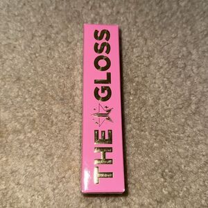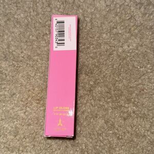 Luxurious lip gloss by Jeffree Star. Features a pink box and gold cap. Perfect for a glossy finish.