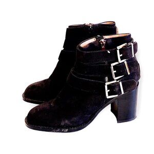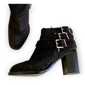 Jeffrey Campbell 3 buckle Rayburn Black Nubuck Ankle Boot Size 7.5