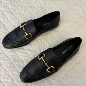 Jeffrey Campbell 7.5 Gold Horsebit Black Loafers Quiet Luxury