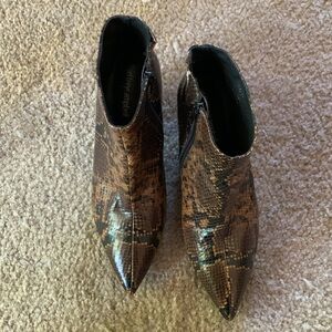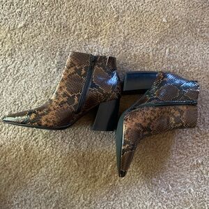 Jeffrey Campbell Ankle Boots Womens Snake Print Leather Pointed Toe Size 7.5