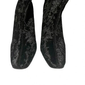 Jeffrey Campbell for Anthropologie crushed velvet velour side zip boot with a square toe and stacked heel in black. Excellent used condition