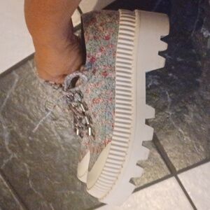 Jeffrey Campbell B2School BlueFloral Fabric Platform LaceUp Lug Sole Size 6.5