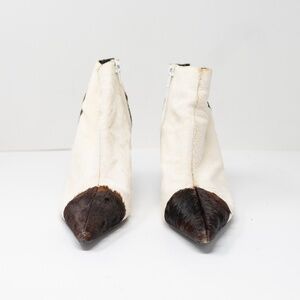 Jeffrey Campbell Barbell Pointed Toe Hell Ankle Booties Shoes Calf Hair Multi 6