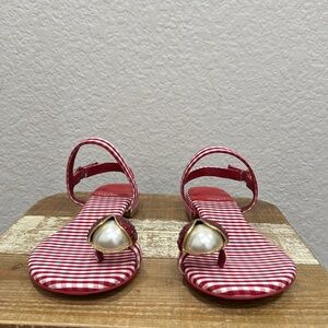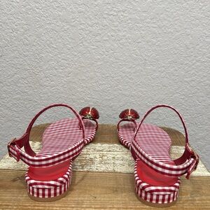 Step out in style with these chic red gingham sandals. Perfect for any casual outing, these sandals offer both comfort and flair.