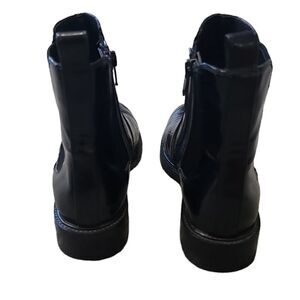 Preowned Jeffrey Campbell Black CrocEmbossed Patent Leather Chelsea Ankle Boots Sz 6. Boots are in excellent used condition.