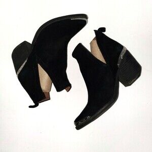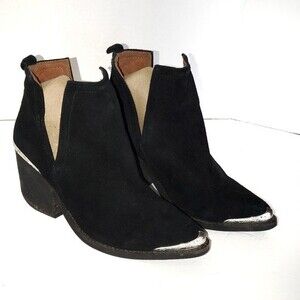 Jeffrey Campbell Black Cromwell Western Suede Booties Silver Tip Size 6