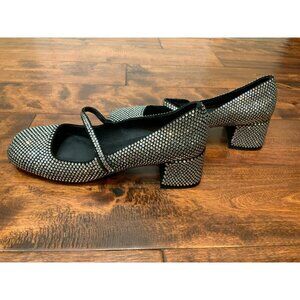 Jeffrey Campbell Black & Crystal Sequin Block Heel Mary Jane Pumps, Size 7.5