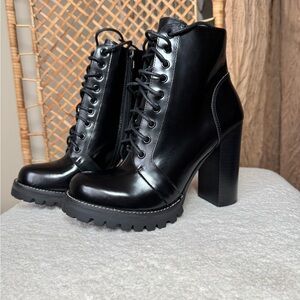 Chic black lace-up boots by Jeffrey Campbell. Stylish and versatile. Ideal for any outfit.