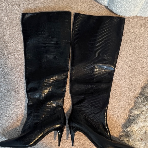 Chic over the knee boots in sleek black. Perfect for stylish outings.