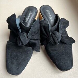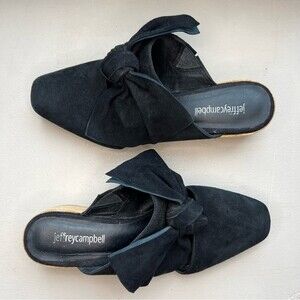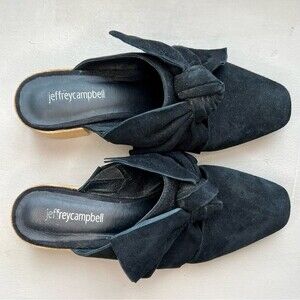 Jeffrey Campbell Black Suede Mule Slip On Shoes w/ Bow & Block Heel Women’s 8
