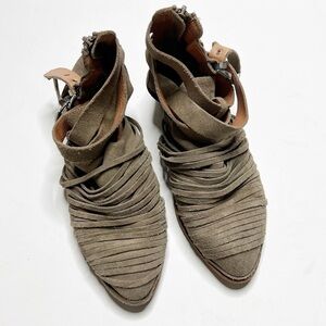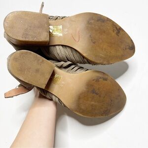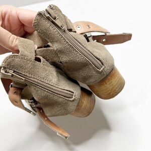 Jeffrey Campbell Block Heel Leather Strappy Ankle Boots Suede Taupe