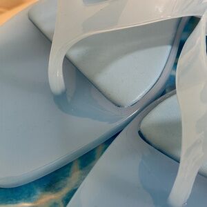 The Jeffrey Campbell Blue Gummy-THG Ankle Wrap Kitten Heel Jelly Thong Sandals in size 10 are a stylish and lightweight option for the summer and spring seasons. Featuring a low kitten heel and ankle strap accent, these sandals are perfect for casual outings, parties, or even traveling. The blue color and modern boho theme give these sandals a trendy and fun vibe, while the synthetic outsole and lining material ensure durability and breathability. Perfect for women who want a chic and comfortable footwear option that is both fashionable and practical.
