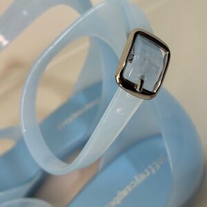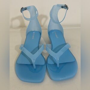Jeffrey Campbell Blue Gummy-THG Ankle Wrap Kitten Heel Jelly Thong Sandals Sz 10