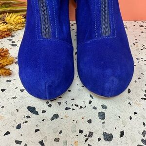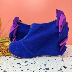Jeffrey Campbell Blue Suede Leather Bow Back Zip Women’s Wedge Booties Sz 8.5