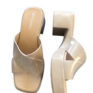 Jeffrey Campbell Bubblegum Platform Sandal Sz. 10 Nude Shiny Patent Jelly Summer