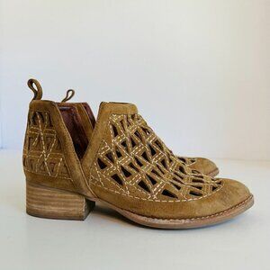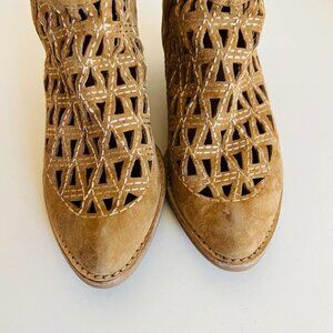 Jeffrey Campbell Camel Suede SAGET Split Shaft Cut Out Ankle Boot