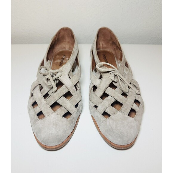 Jeffrey Campbell Canela Taupe Suede Strappy Low Stacked Heel Flats Women's 9.5