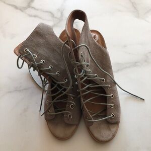 Jeffrey Campbell Carolyn Lace-Up Wedge Sandal Tan