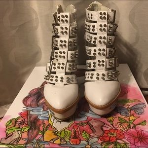 Pure white/silver detail, worn 3 times, very minor unnoticeable scuffs, super comfy, not missing any spikes/studs, purchased from solestruck.com, women's size US 6.
