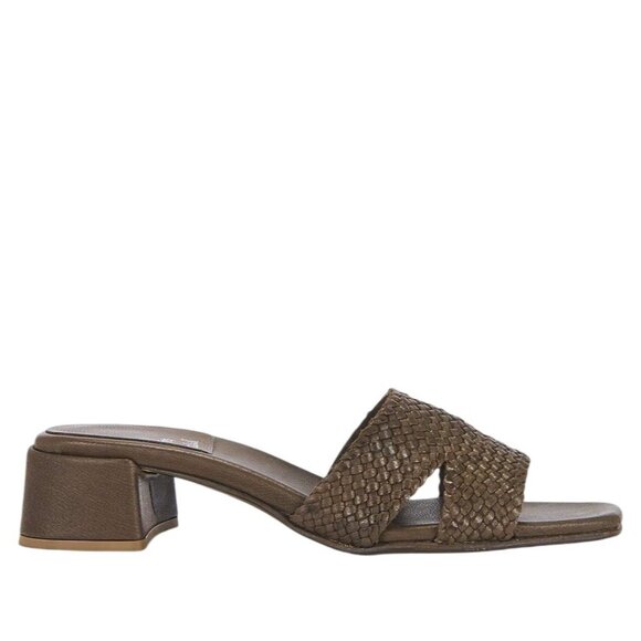 Sleek side cutouts and finely woven leather distinguish a square-toe slide sandal lifted by a modest block heel for walkable height.