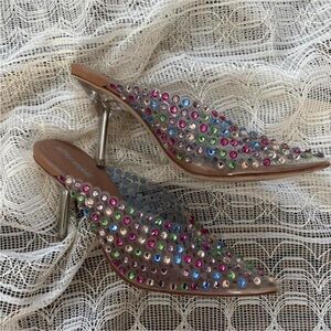 Vibrant heels with multicolor gemstones. Perfect for a bold statement.